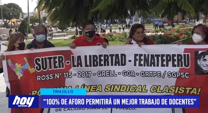Los docentes del SUTER La Libertad mostraron su agradecimiento al Gobierno por aprobar la ley de la devolución de la CTS que venían pidiendo desde hace un largo tiempo, ellos además se mostraron a favor del 100% de aforo en las instituciones educativas pues indican que es la única manera de que los estudiantes reciban clases de una manera correcta.
