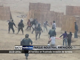 Más de 20 heridos dejó el violento enfrentamiento entre la policía y 400 invasores que intentaban apoderarse del terreno destinado para el Parque Industrial del Calzado en el distrito El Porvenir. Los agentes del orden fueron agredidos.