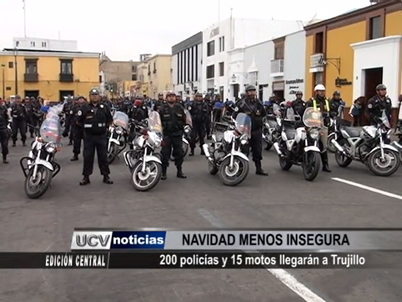 Mañana llegarán a Trujillo 200 policías de Lima y 15 motocicletas para fortalecer el tema de la seguridad en la ciudad y en diversas provincias. La mirada se centrará en los centros comerciales.