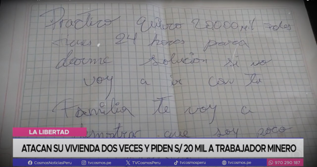 Las amenazas iniciaron desde inicios del 2024, para luego convertirse en un primer ataque. La increíble respuesta por parte de la policía y el temor por su familia, hizo que este hombre diera 1000 soles a los facinerosos para que no continúen con los ataques.