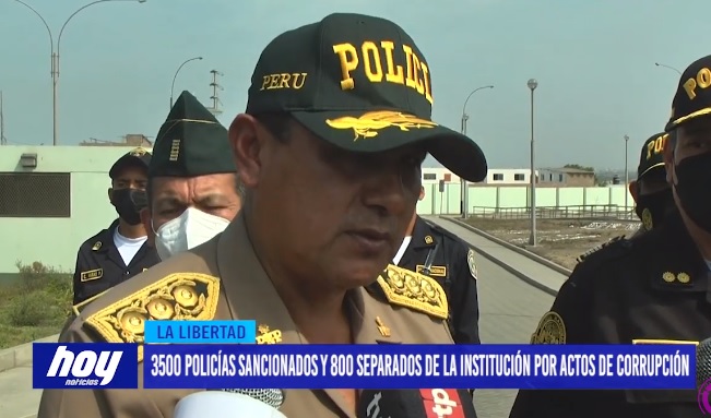 El teniente general de la inspectoría de la Policía Nacional visitó la escuela de suboficiales de Trujillo, en declaraciones informó que en el año 2021, más de tres mil policías fueron sancionados y cerca de 800 separados de la institución.