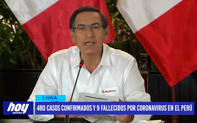 El Perú registra 480 casos confirmados y 9 muertes por coronavirus. El Presidente de La República, Martín Vizcarra, dio una conferencia de prensa al mediodía, en donde también informó que el jueves se anunciará si aumentan los días del estado de cuarentena.