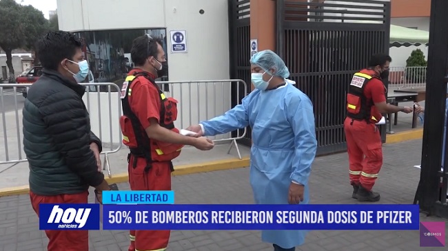 El 50% de bomberos de la región La Libertad ya han recibido la segunda dosis de la vacuna Pfizer. El jefe de la III comandancia departamental de bomberos, dijo que, fue inmunizado el personal de siete compañías de bomberos, considerado en primera fase.