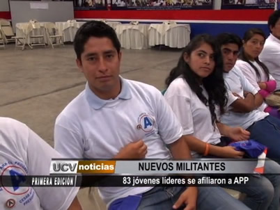 83 jóvenes líderes de diversos distritos y provincias juramentaron como nuevos militantes de Alianza Para el Progreso. Ellos serán incluidos en la conformación de los principales cuadros políticos con miras a las elecciones municipales y regionales.