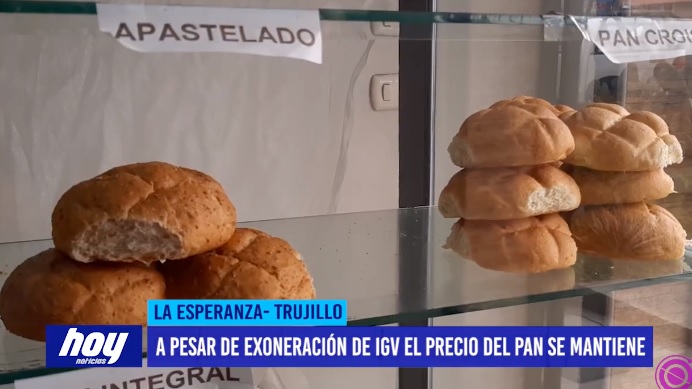 Por ejemplo, en el distrito de La Esperanza, en una tienda ubicada en la av. José Gabriel Condorcanqui el pan se mantiene a cinco por un nuevo sol, ciudadanos señalan que no se aprecia esta exoneración del IGV.