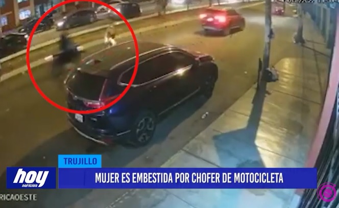 El accidente ocurrió el último jueves 4 de agosto, a las 7:59 de la noche, todo quedó registrado por la cámara de seguridad del lugar. La mujer se disponía a cruzar la pista y es cuando la motocicleta la embiste.