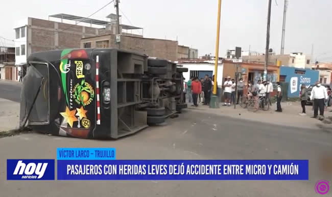 Este martes en horas de la mañana se registró un choque entre un micro de la empresa Nuevo California con pasajeros a bordo y un camión, marca Volvo, a la altura de la vía de Evitamiento con avenida Larco, afortunadamente no hubo heridos de gravedad.