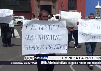 A dos días de que asuma funciones el nuevo rector de la Universidad Nacional de Trujillo, trabajadores administrativos, protestan y amenazan con acatar un paro si la autoridad no atiende sus reclamos.