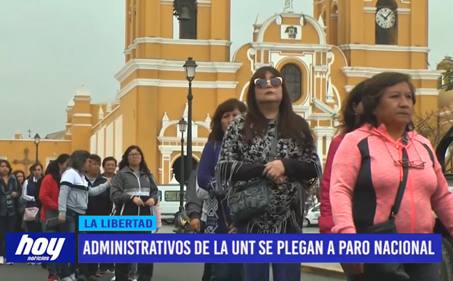 Unos 800 trabajadores administrativos, entre nombrados y CAS, pertenecientes a la Universidad Nacional de Trujillo, se plegaron a un Paro Nacional, para exigir al gobierno atienda su pliego de reclamos.