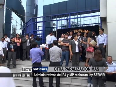 Los trabajadores administrativos del Poder Judicial y del Ministerio Público acataron un paro de 48 horas en rechazo a la implementación de la Ley de Servicio Civil.
