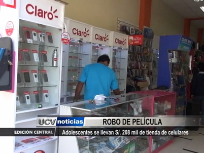 En menos de media hora, dos adolescentes asaltaron una tienda de celulares, llevándose equipos y dinero en efectivo por una suma de 208 mil soles. El atraco se registró en pleno Centro Histórico.