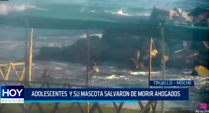 Dos niños y su mascota fueron rescatados del mar de Las Delicias. A 100 metros de la orilla, quedaron atrapados en unas rocas, tras ser sorprendidos por la marea.