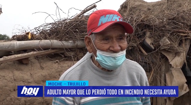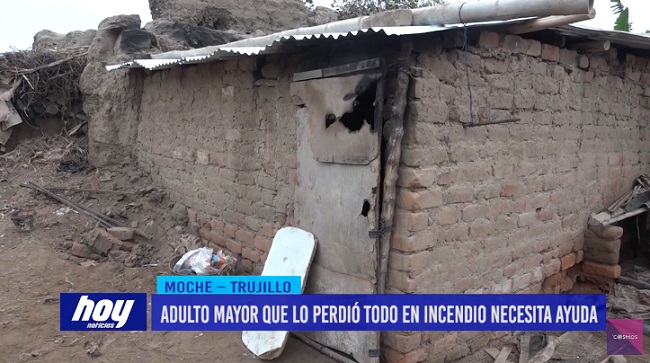 En el centro poblado curva de Sun, distrito de Moche, un adulto mayor necesita ayuda, pues su precario cuarto se incendió y perdió sus pertenencias.