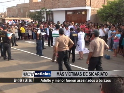 Un adulto y un menor de edad fueron asesinados a balazos por un grupo de sicarios en el sector Buenos Aires Sur del distrito de Víctor Larco. Los delincuentes tenían como blanco a un sujeto que logró escapar y terminaron matando a su hermano y a un adolescente que presenció el ajuste de cuentas.
