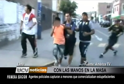 Policías del Escuadrón Verde capturaron a dos menores de edad que comercializaban droga en Chorrillos. Cámaras de seguridad captan venta de estupefacientes.