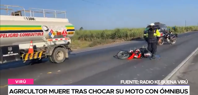 Un agricultor falleció luego que su motocicleta chocara con un ómnibus interprovincial en la carretera panamericana norte en la provincia de Virú.
