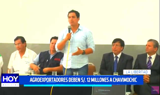 El gobernador regional de La Libertad, Luis Valdez, sostuvo que no permitirá que empresarios agroexportadores se aprovechen del Estado, esto en referencia a las denuncias judiciales interpuestas para no pagar por el servicio de agua que les brinda Chavimochic. La deuda total asciende a más de 12 millones.