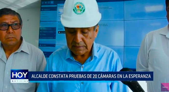 Alcalde del distrito de La Esperanza, Daniel Marcelo, constató la fase de prueba de las 20 cámaras que se instalaran en los puntos críticos de esta zona. Además, anunció que se viene coordinando con el Gobierno Regional de La Libertad para la adquisición de otras 100 cámaras de videovigilancia.
