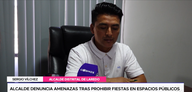 El alcalde del distrito de Laredo, Sergio Vílchez, ha tomado la iniciativa de cerrar y cancelar todos los eventos en espacios públicos con el fin de evitar hechos criminales e inseguridad. La medida le habría costado amenazas contra su vida, según denunció.