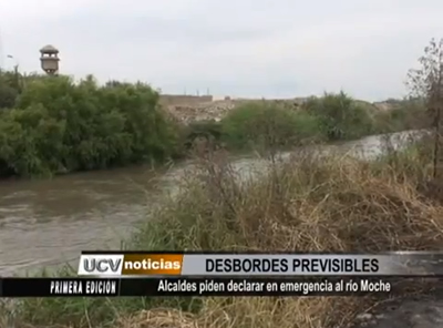 Alcaldes del valle Santa Catalina piden al Consejo Regional declarar en situación de emergencia el río Moche, debido al alto riesgo que tiene en tiempo de lluvia. Sólo en el distrito de Poroto se perdieron más de 20 hectáreas de cultivo el año pasado.