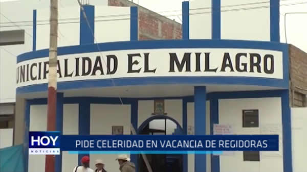 La alcaldesa de la municipalidad del centro poblado El Milagro, en Huanchaco, pidió celeridad a la Municipalidad Provincial de Trujillo para aprobar la vacancia de 2 regidoras.
