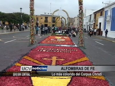 Como parte de la ceremonia católica del Corpus Christi, varios estudiantes participaron de la ya tradicional confección de alfombras de fe, son 36 en total.
