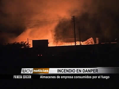 Dos almacenes de la empresa agroindustrial Danper fueron consumidos por el fuego. Al parecer, un globo aerostático que cayó en este lugar originó el siniestro.