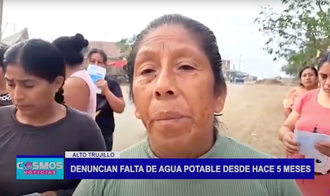 Vecinas del barrio 7 en la manzana L del distrito Alto Trujillo realizaron un plantón reclamando por el mal servicio que les brinda la empresa Sedalib, según indican hace 5 meses prácticamente no tienen agua.