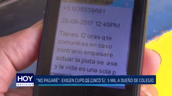 El promotor de un centro educativo del centro poblado Alto Trujillo es extorsionado por sujetos que le piden dinero para no atentar contra su vida y la de su familia.