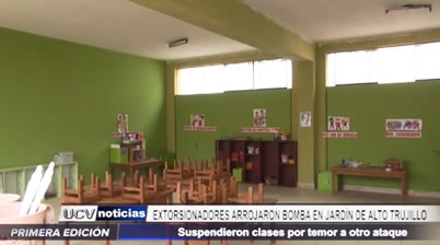 Delincuentes arrojaron un artefacto explosivo en el jardín “Gotitas de Amor” del centro poblado Alto Trujillo, y dejaron una carta extorsiva para la directora. Las clases fueron suspendidas, hasta el jueves, por temor a otro atentado.