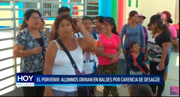 Alumnos de jardín inicial «Túpac Amaru», del distrito de El Porvenir, orinan en bolsas y botellas porque institución no cuenta con servicio de desagüe. Aulas tienen olores nauseabundos y padres temen que menores contraigan enfermedades.