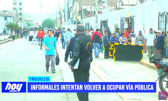 Comerciantes ambulantes intentan volver a ocupar la vía pública de los alrededores del ex mercado Mayorista, luego de haber sido desalojados tras un operativo realizado por la Municipalidad Provincial de Trujillo.