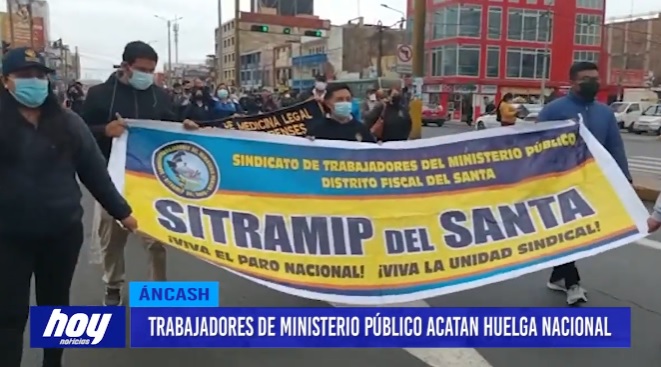 Trabajadores administrativos del Ministerio Público de Chimbote, región Áncash, acatan una huelga realizada a nivel nacional. Entre los petitorios se encuentran una mejor y más justa remuneración sin discriminación ni diferenciación por regímenes laborales, que se aplique el tercer tramo de la escala remunerativa, mejor presupuesto para el 2023 y la unificación del régimen laboral en el Poder Judicial y Ministerio Público.