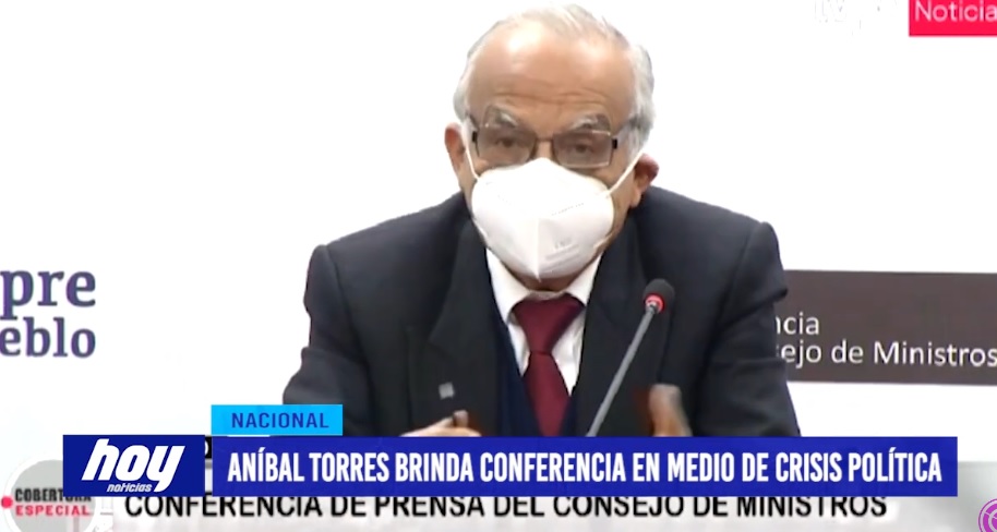 En medio de la crisis política que se vive en el país por el caso de Yenifer Paredes, quien se encontraba prófuga de la justicia, el presidente del consejo de ministros, Aníbal Torres, brindó la tarde del miércoles desde una conferencia de prensa, junto con otros miembros del equipo, tras la sesión del Consejo de Ministros.