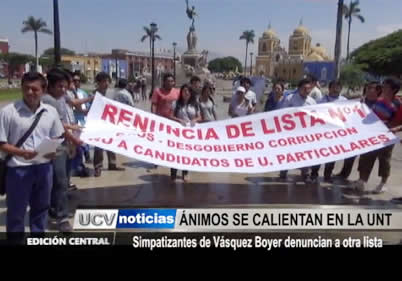 Los ánimos se calientan en la Universidad Nacional de Trujillo. Simpatizantes de la lista del candidato Carlos Vásquez Boyer, denunciaron que los miembros de la lista rival, liderada por Orlando Gonzáles Nieves, no estarían habilitados para ejercer los cargos porque ya sobrepasarían la edad máxima que estipula la ley universitaria.