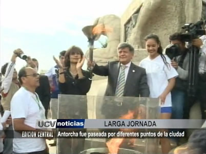 Posteriormente, el símbolo deportivo de los Juegos Bolivarianos llegó hasta la Plaza de Armas. Allí en un histórico acto para nuestro país y sobretodo para Trujillo, el alcalde provincial encendió el pebetero, acompañado por las congresistas y glorias de nuestro voley, Cecilia Tait y Leila Chihuán.