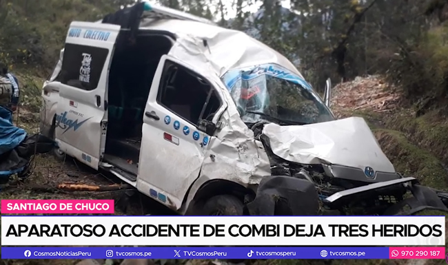 En la provincia liberteña de Santiago de Chuco, una combi de transporte interprovincial se despistó en la vía que conecta los distritos de Cachicadán y Santiago de Chuco, dejando tres heridos. Las víctimas fueron trasladadas al hospital César Vallejo.