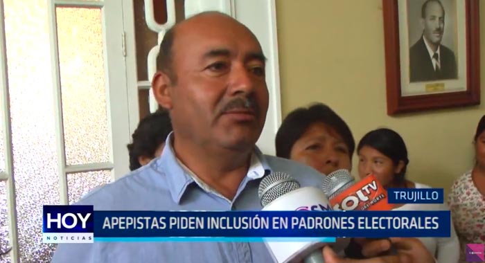El regidor apepista del distrito de Moche, Máximo Carrión, llego acompañado de un grupo de mujeres procedentes del centro poblado de Miramar, para solicitar a la comuna provincial su inclusión en los padrones electorales, y así poder sufragar el próximo 23 de diciembre.