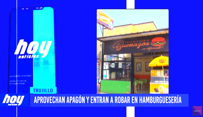 Aprovecharon que la energía eléctrica se había cortado para ingresar a esta hamburguesería y con un arma de fuego amenazar a la vendedora y llevarse mil quinientos soles de la venta del día, aparatos electrónicos.