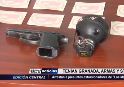 Capturan a dos presuntos extorsionadores ligados a la banda delincuencial “Los Malditos del Triunfo”. En la vivienda de uno de los intervenidos, se halló una granada, pistolas y stickers extorsivos.