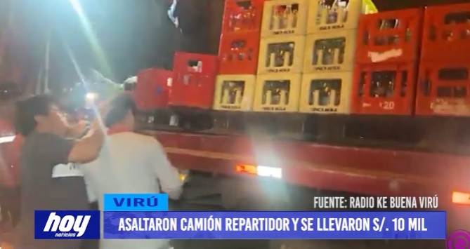Ni el carro repartidor de coca cola se salvó de los delincuentes, el último miércoles al promediar las 8 de la noche en la av. Los ciruelos en Virú trabajadores de esta conocida empresa fueron interceptados por 3 sujetos de nacionalidad venezolana quienes iban a bordo de una moto lineal, los mismos que agredieron al conductor del camión con la cacha de la pistola para arrebatarle aproximadamente 10 mil soles producto de la venta del día.