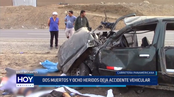 Una camioneta se despistó en la carretera Panamericana Norte a la altura del desvío a Chiquitoy (Santiago de Cao, Ascope). Dos personas fallecieron y otras ocho resultaron heridas, entre ellas, cinco menores de edad.