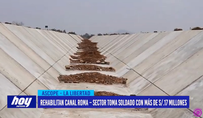 En la provincia de Ascope, el Ministerio de Desarrollo Agrario y Riego empezó la rehabilitación del canal Roma – sector Toma Soldado. La inversión supera los 17 millones de soles y beneficia a más de 500 familias.