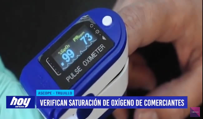 Comerciantes de Ascope fueron sometidos a un control de oxígeno y frecuencia cardiaca con oxímetro para verificar la saturación de oxígeno en la sangre.