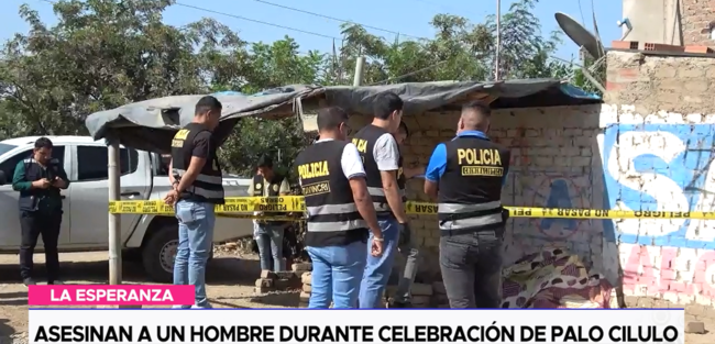 La madrugada del domingo, durante una fiesta de palo cilulo por Carnaval, un ciudadano identificado como Reynaldo Trujillo Rojas, de 40 años, fue asesinado por desconocidos. El crimen ocurrió en el asentamiento humano Las Palmeras, en el distrito La Esperanza, parte alta.