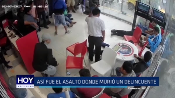 Cámaras de seguridad registraron un asalto en una casa de apuestas. Los videos también captaron la intervención rápida de la policía y la balacera en las afueras del establecimiento.
