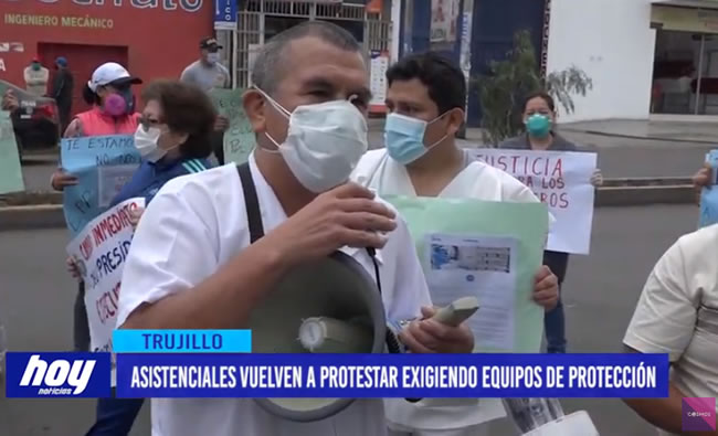 Nuevamente trabajadores asistenciales del hospital Víctor Lazarte de EsSalud, protestaron por la falta de equipos de protección personal, además exigen mejores condiciones laborales.
