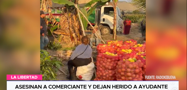 La provincia de Virú vuelve a ser escenario de un violento crimen. Cuatro delincuentes encapuchados y fuertemente armados irrumpieron en la zona de cultivos de San Carlos Alto, en el distrito de Chao, donde maniataron de pies y manos a varios trabajadores que cosechaban maracuyá. En el lugar, a sangre fría, acribillaron al comerciante y conductor de un camión, quien transportaba el producto, y se llevaron 10 mil soles. Además, su ayudante resultó gravemente herido y fue trasladado a Trujillo por la gravedad de sus heridas.