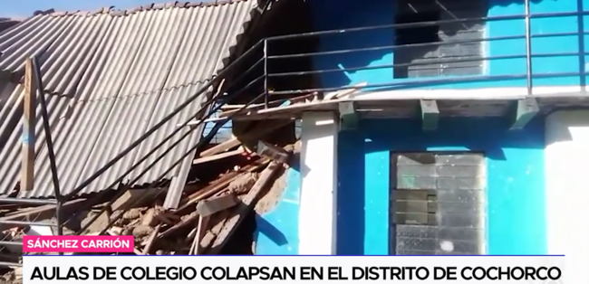 Las aulas de la institución educativa del centro poblado de Succha Centro ubicado en el distrito de Cochorco, en la provincia de Sánchez Carrión, se desplomaron en las primeras horas de la mañana del último lunes.