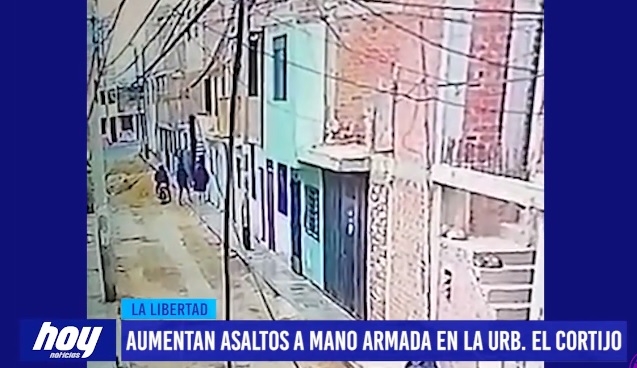 Los vecinos de la urbanización El Cortijo en Trujillo viven atemorizados por los continuos asaltos a mano armada perpetrados por sujetos a bordo de una motocicleta. Hace unos días las cámaras de seguridad captaron el robo a este joven en la cuadra 1 de la calle Vargas Llosa.